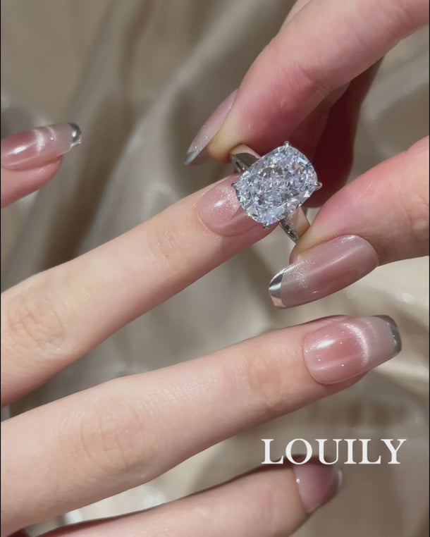 This 8.0 carat cushion-cut engagement ring embodies timeless beauty, set in polished sterling silver for a look that’s both refined and radiant. The clean silhouette highlights the brilliance of the center stone, making it the perfect travel companion for those who adore elegance with a touch of glamour.