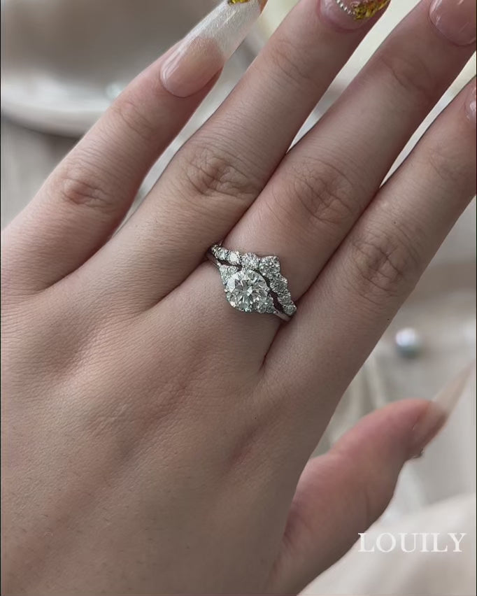 Classic Moissanite 1.2 CT Round Cut Wedding Ring Set With Curved Design Wedding Band