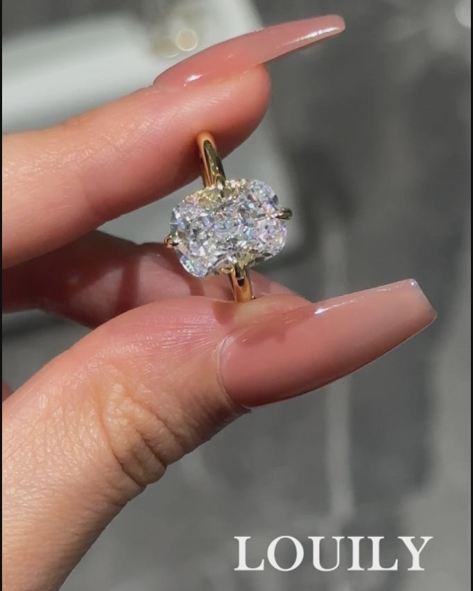 Louily Classic Cushion Cut Engagement Ring For Women In Sterling Silver