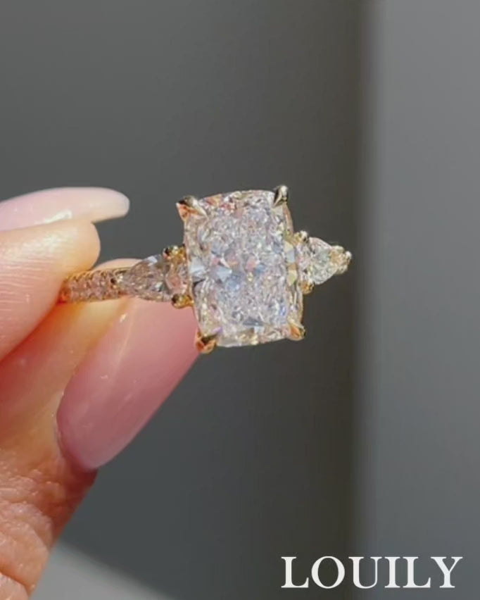Louily Cushion Cut Three Stone Engagement Ring With Two Pear Cut Side Stones