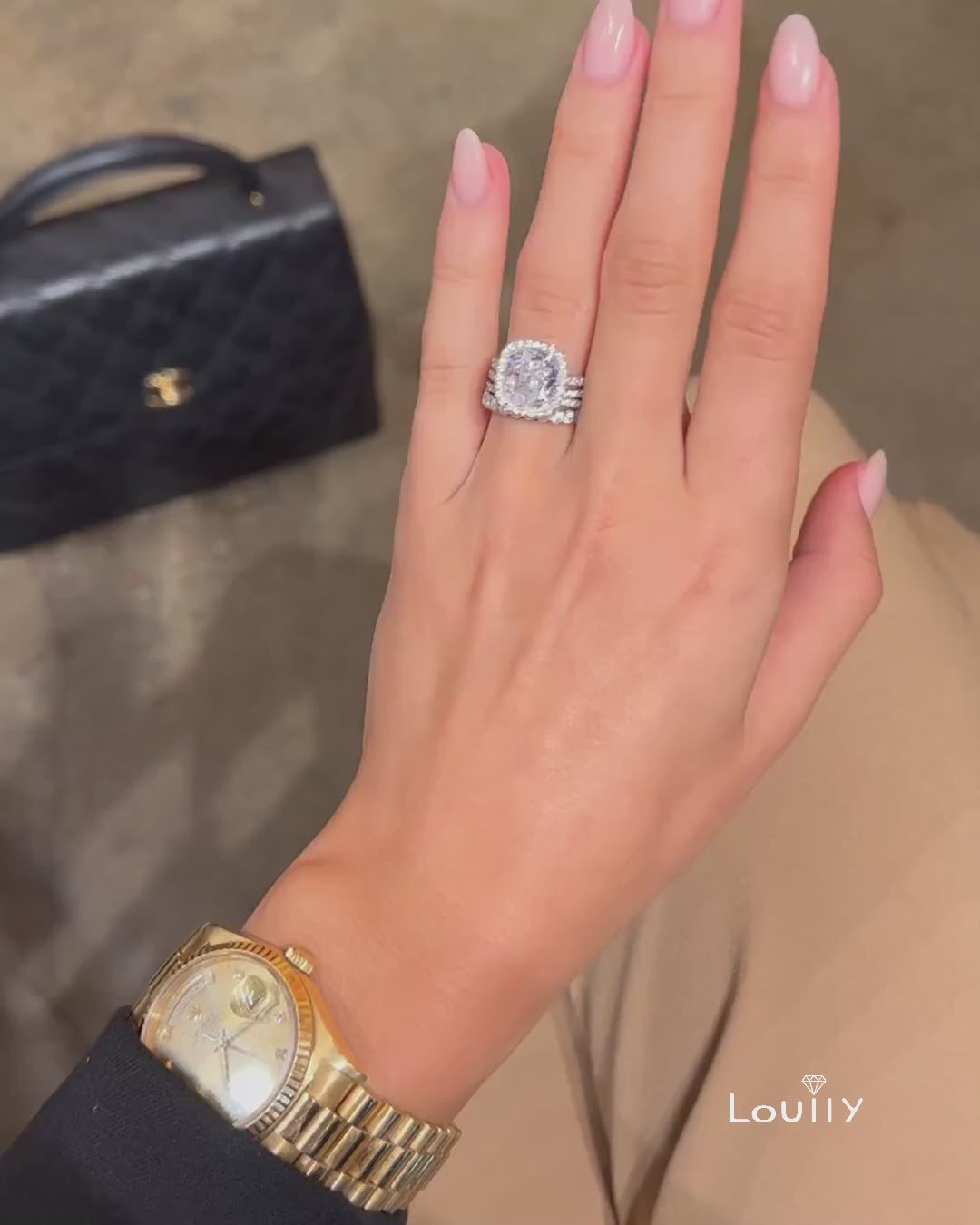 Louily Desirablet Halo Cushion Cut 3PC Wedding Set