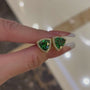 Louily Elegant Yellow Gold Trillion Cut Emerald Green Earrings In Sterling Silver
