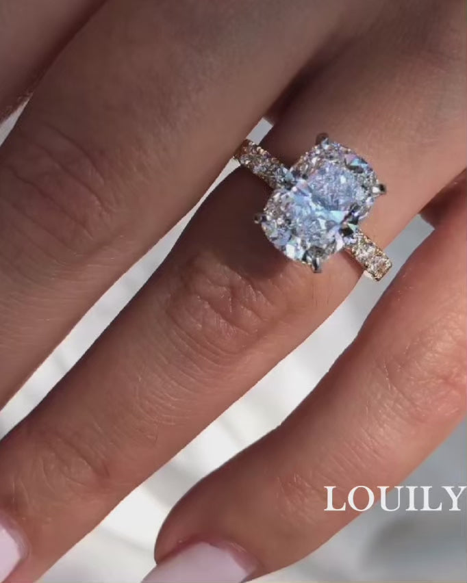 Louily Exclusive 6.5Ct Cushion Cut Engagement Ring For Women
