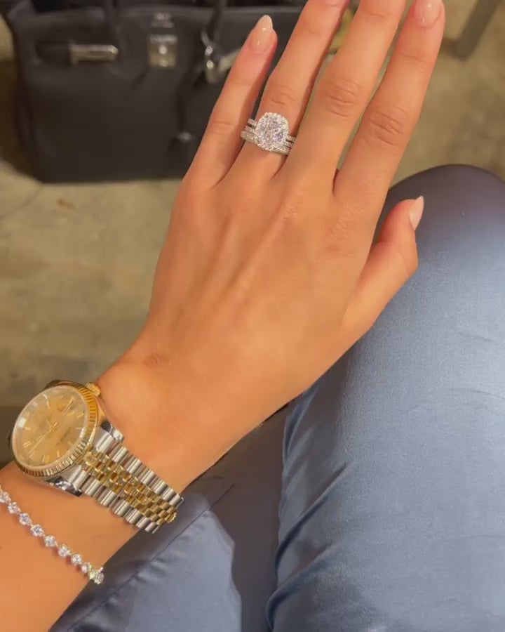 Louily Exclusive Halo Cushion Cut 3PC Wedding Set In Sterling Silver
