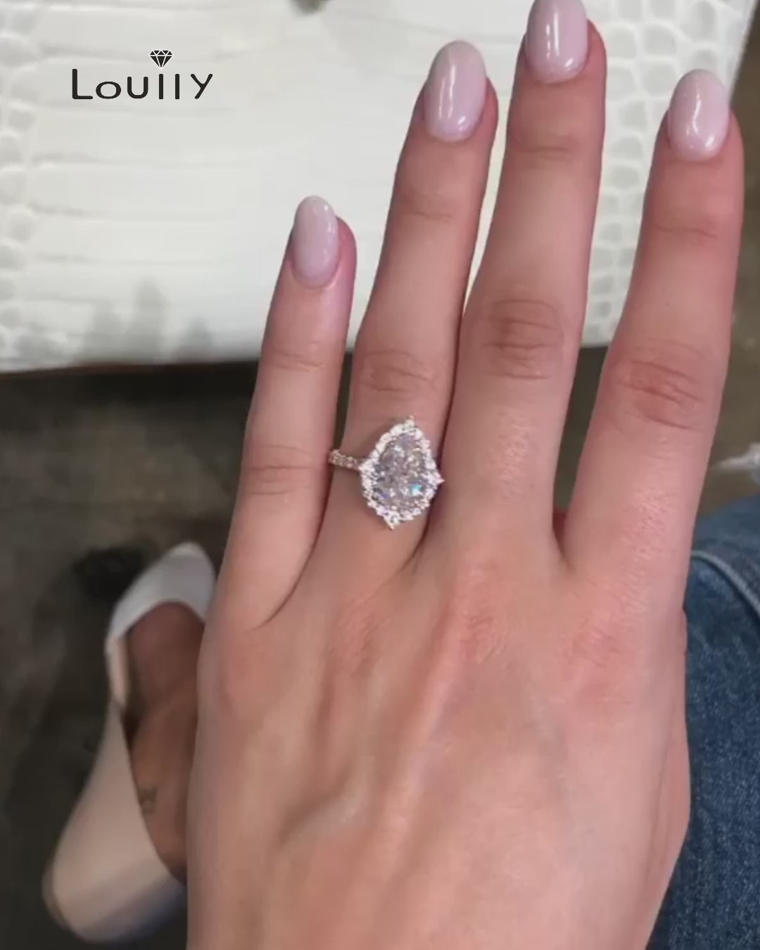 Louily Exquisite 2.2 Carat Halo Pear Cut Rose Gold Engagement Ring In Sterling Silver