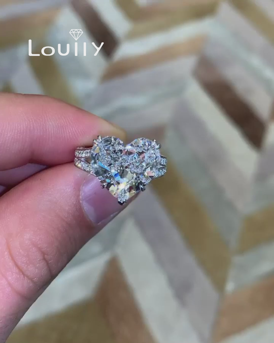 Louily Exquisite 5.0 Carat Heart Cut Engagement Ring In Sterling Silver