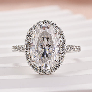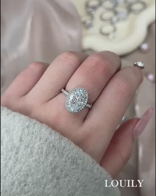Louily Exquisite Moissanite 4.0 Carat Halo Oval Cut Engagement Ring In Sterling Silver