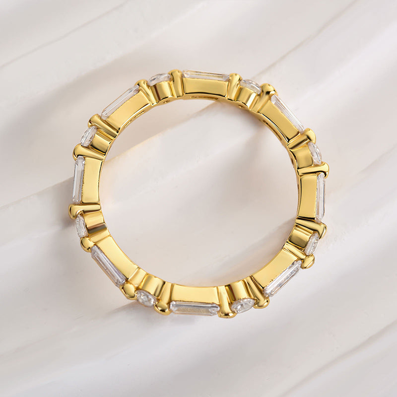 Louily Fashion Yellow Gold Emerald & Round Cut Diamond Wedding Band In Sterling Silver