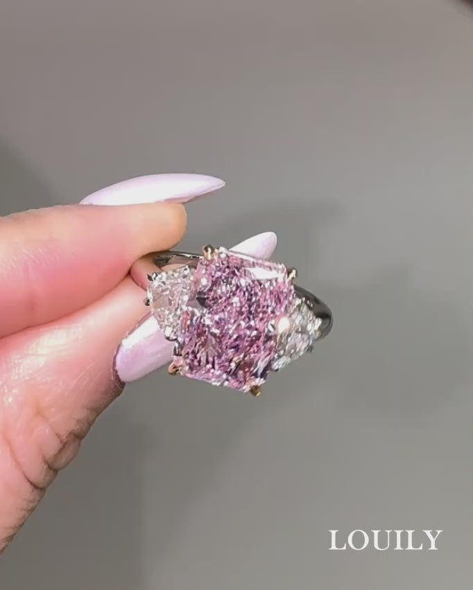Louily Gorgeous Pink Stone Radiant Cut Three Stone Engagement Ring
