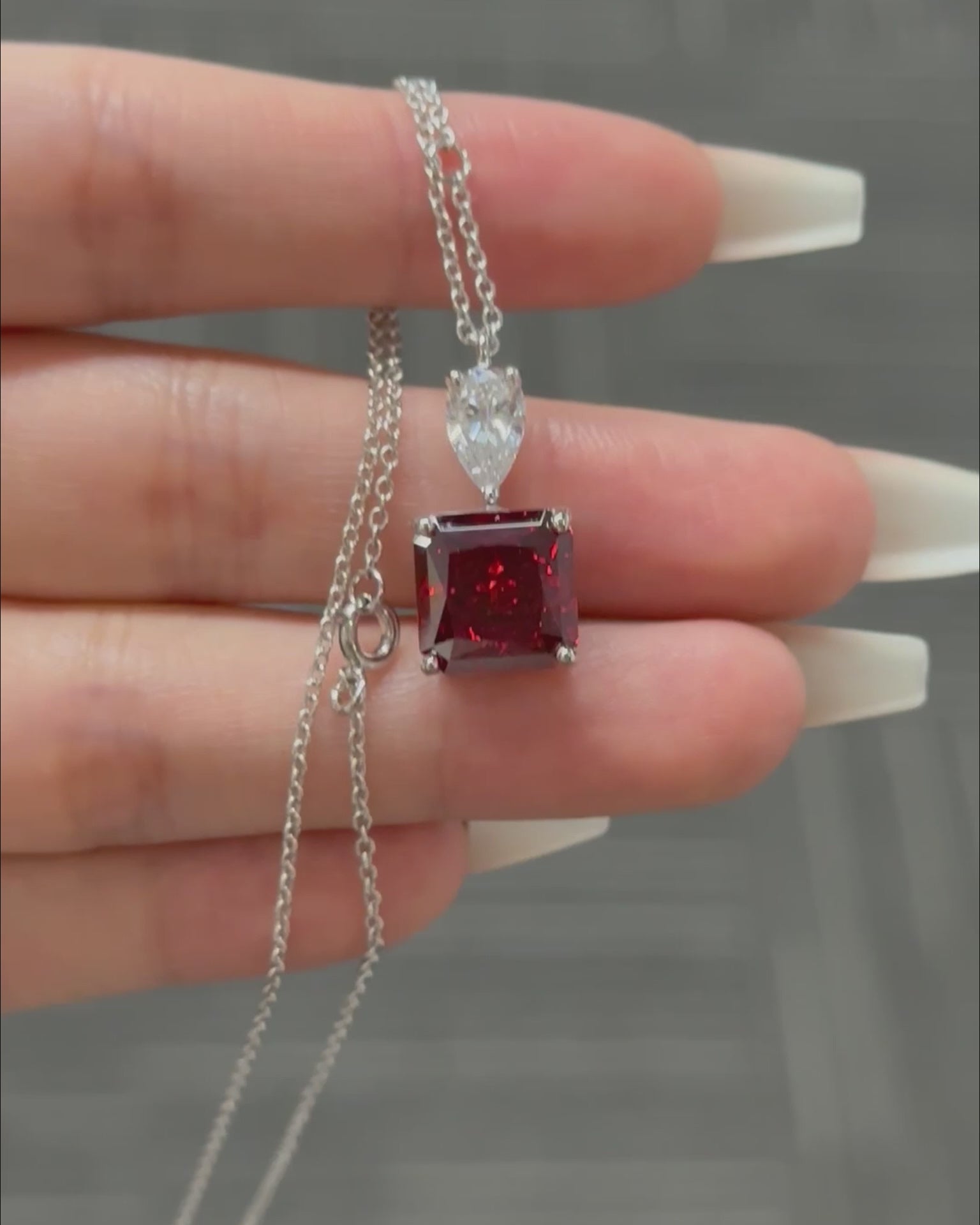 Louily Honorable Radiant Cut Ruby Stone Necklace In Sterling Silver
