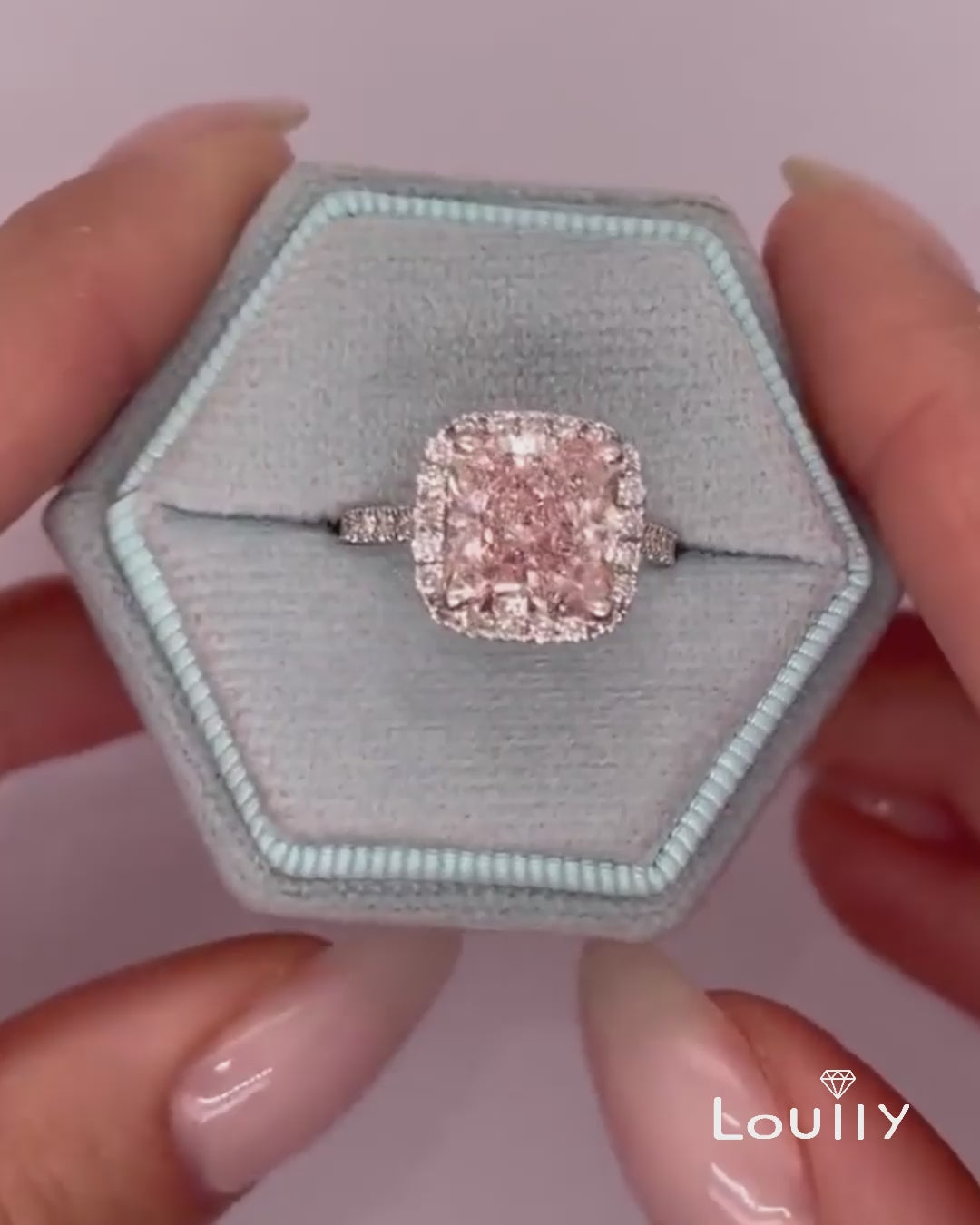 Louily Lovely Halo Radiant Cut Pink Stone Engagement Ring