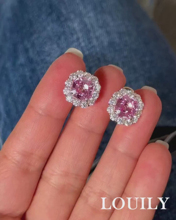 Louily Lovely Pink Stone Cushion Cut Women's Stud Earrings