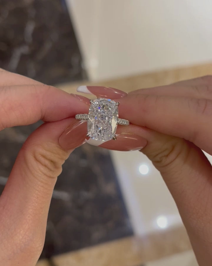 Louily Luxurious Elongated Cushion Cut Engagement Ring For Women In Sterling Silver