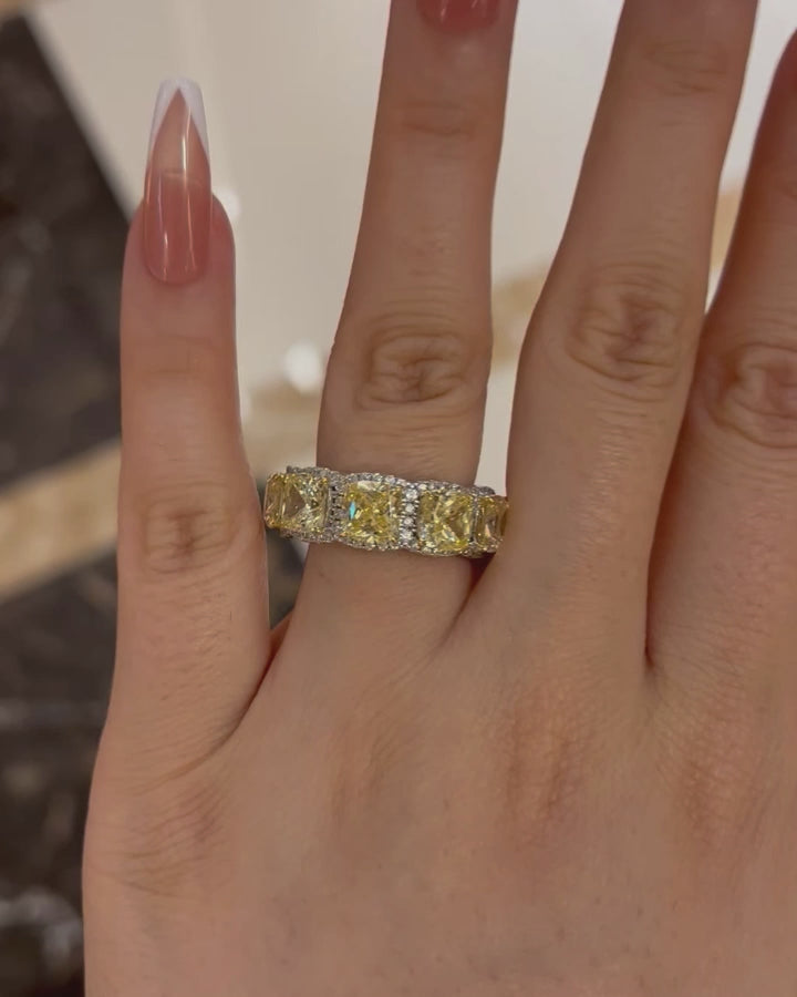 Louily Luxurious Halo Cushion Cut Yellow Sapphire Wide Wedding Band for Her In Sterling Silver