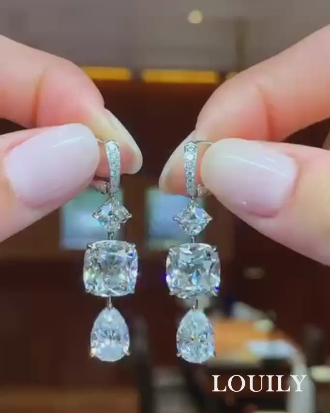 Louily Luxurious Pear Cut & Cushion Cut White Stone Drop Earrings