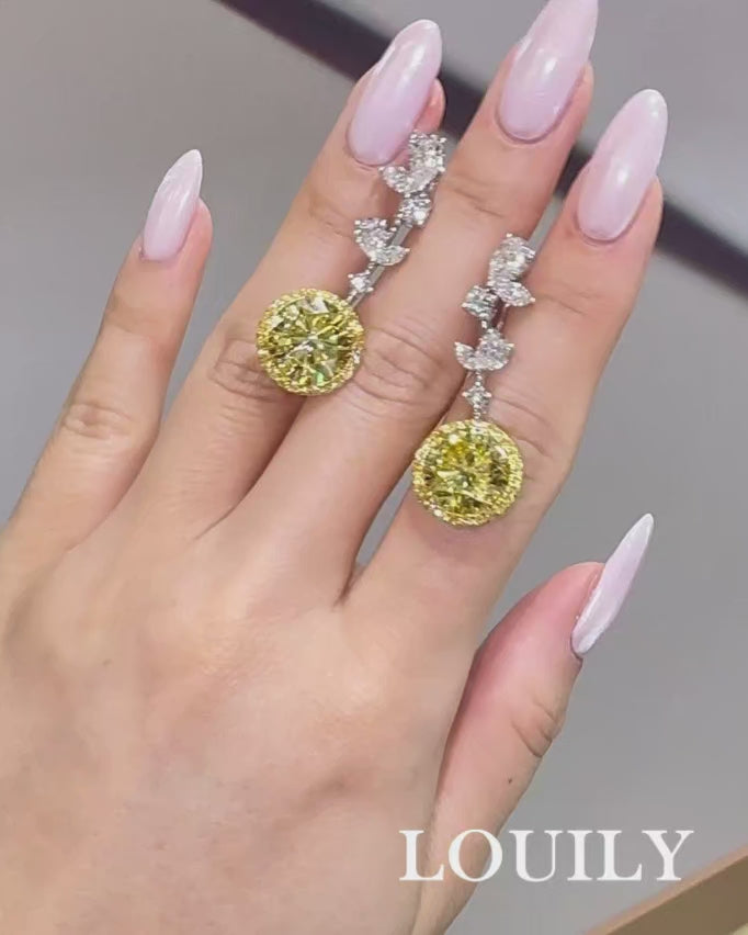 Louily Luxurious Two-tone Yellow Stone Round Cut Drop Earrings