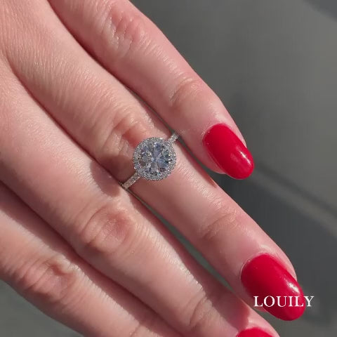 Louily Moissanite 2.0 Carat Halo Round Cut Engagement Ring