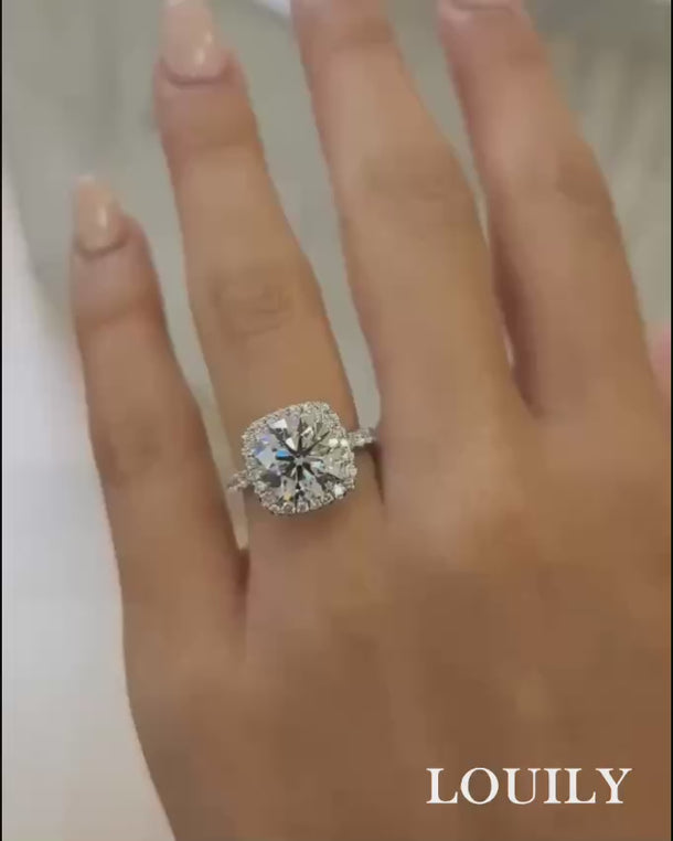 Louily Moissanite 2.0 Ct Halo Round Cut White Gold Promise Ring