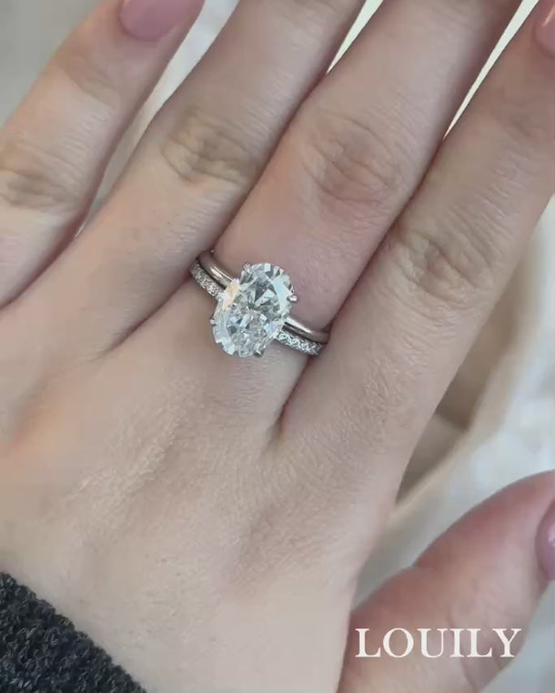 Louily Moissanite 4.0 Ct Hidden Halo Solitaire Oval Cut Wedding Ring
