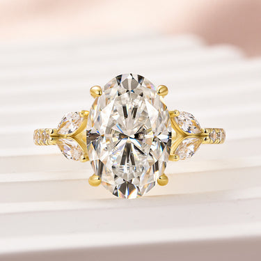 Louily Moissanite 4.0 Ct Oval and Angled Marquise Five Stone Engagement Ring