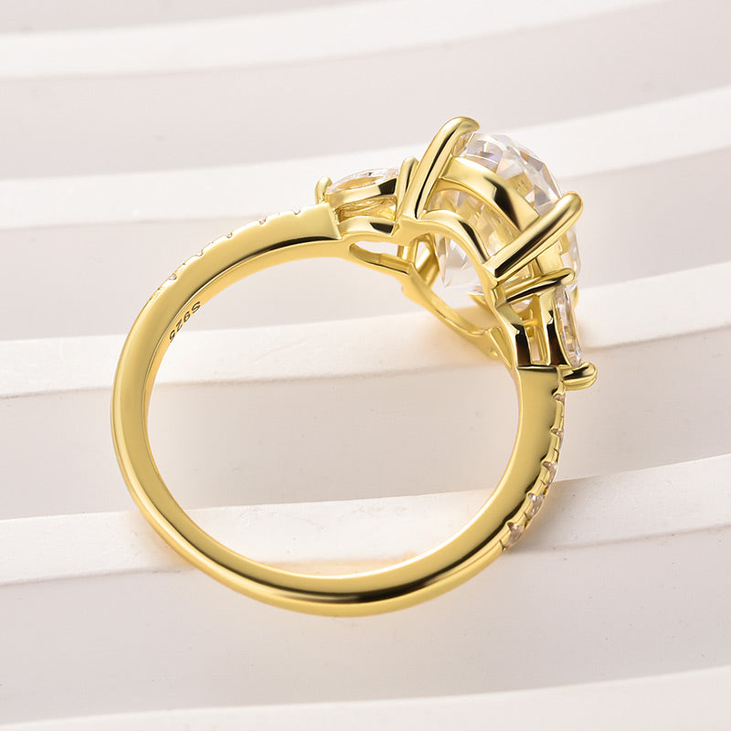 Design Inspiration:Inspired by the celestial phenomenon of a meteor shower gracing the night sky, this five-stone ring captures both movement and harmony. The oval center stone embodies a moment of brilliant stillness, while the angled marquise stones flank it like shooting stars in elegant motion—a design that mirrors the magic of cosmic alignment, where distinct souls unite to form one radiant destiny.