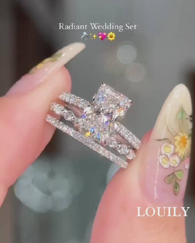 Louily Noble 3.5Ct Radiant Cut 3PC Wedding Ring Set