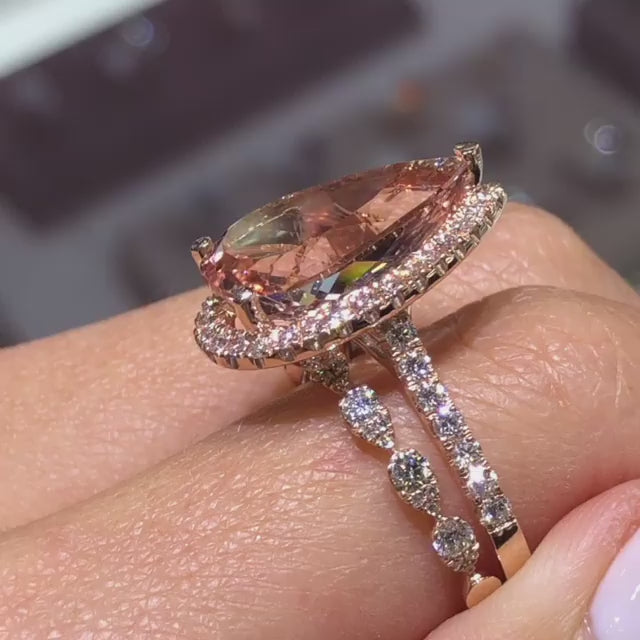 Louily Rose Gold Halo Pear Cut Synthetic Morganite Wedding Set