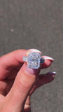 Louily Sparkle Halo Three Shank Radiant Cut Engagement Ring In Sterling Silver