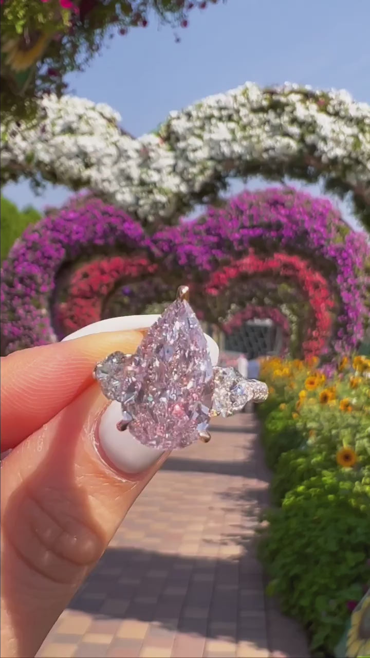 Louily Stunning Pear Cut Pink Sapphire Three Stone Engagement Ring