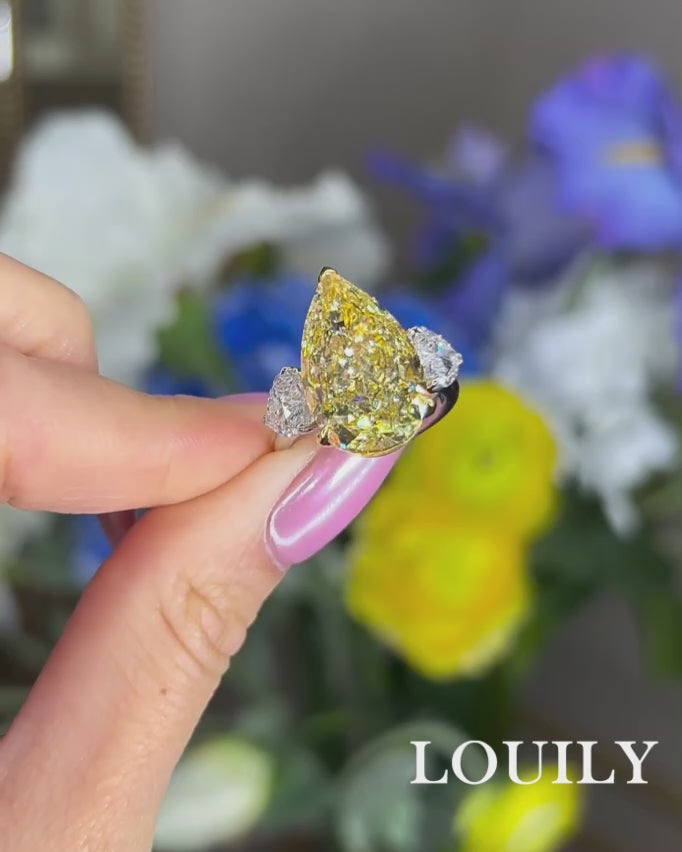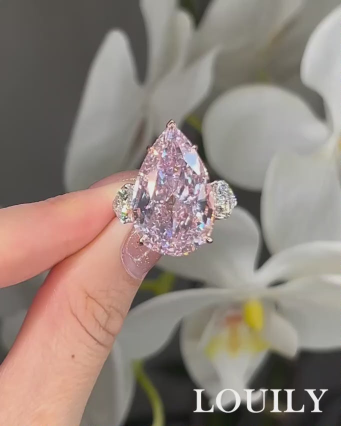 Louily Stunning Pear Cut Sapphire Three Stone Engagement Ring