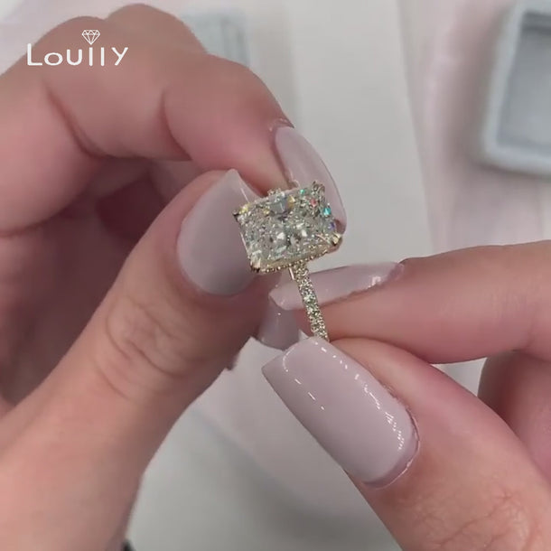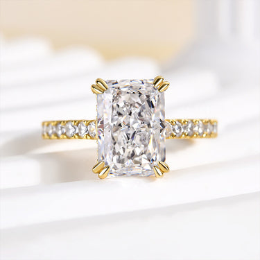 Louily Stunning Yellow Gold Radiant Cut Simulated Diamond Engagement Ring