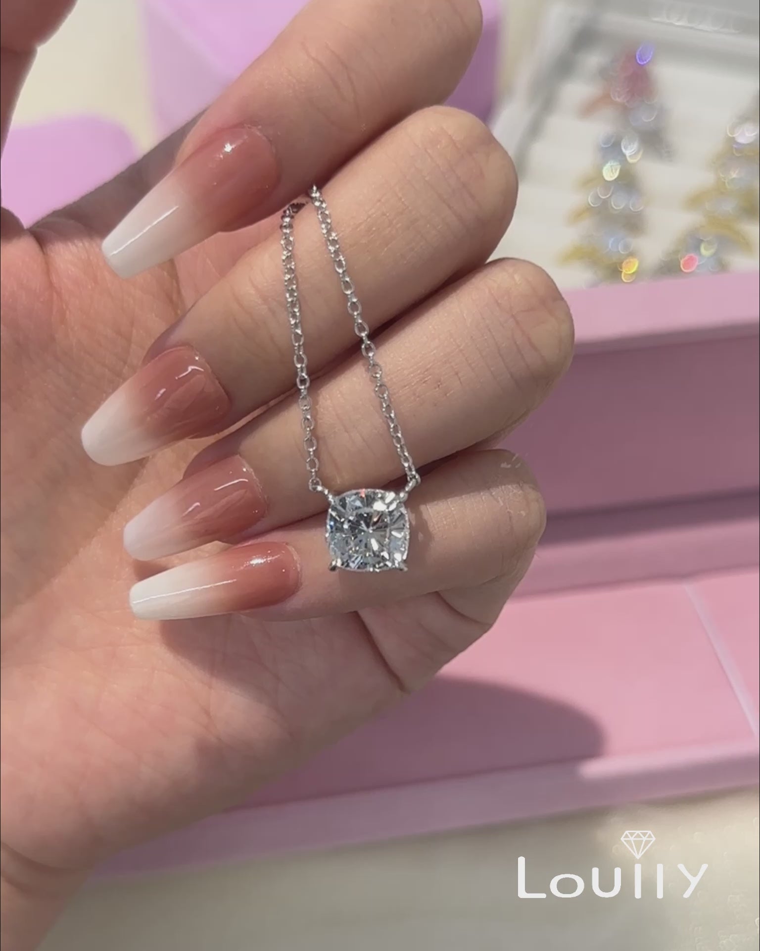 Louily Timeless Cushion Cut Pendant Necklace In Sterling Silver