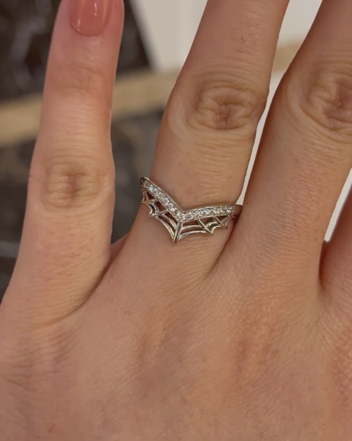 Louily Unique Cobweb Design Round Cut Wedding Band In Sterling Silver