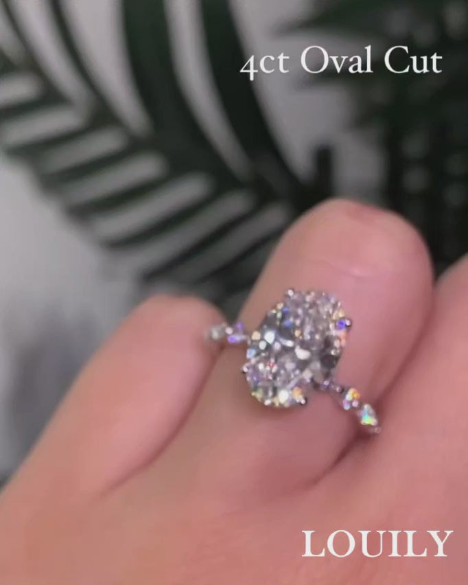 Louily Unique Oval Cut Engagement Ring In Sterling Silver