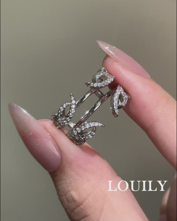 Louily Unique White Gold Open Wedding Band In Sterling Silver