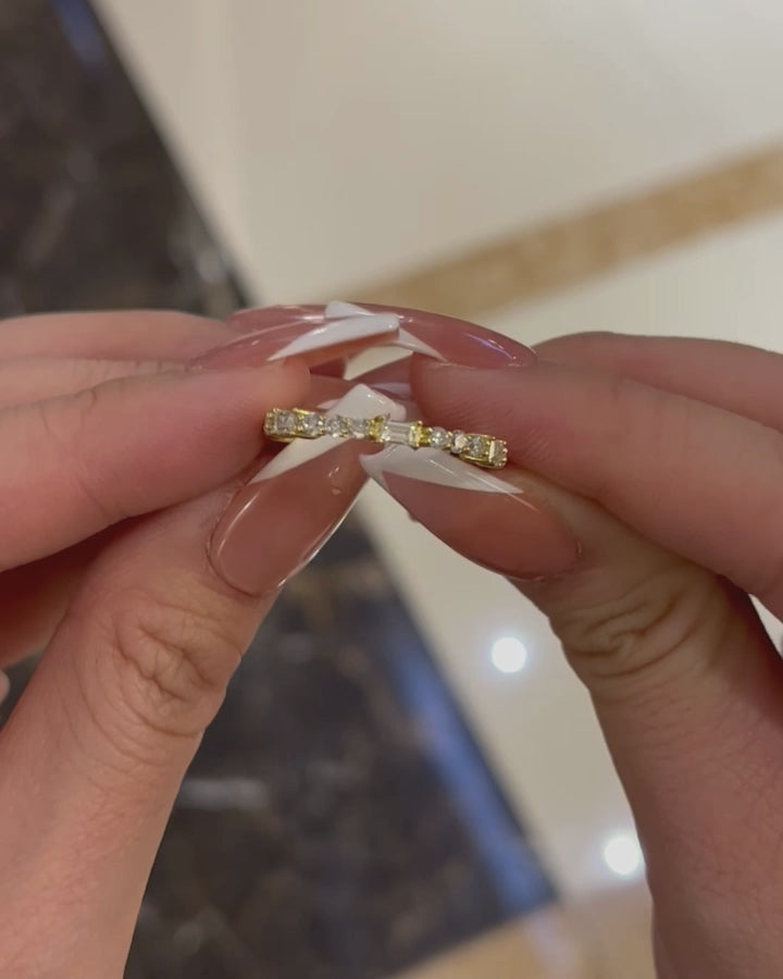 Louily Unique Yellow Gold Emerald & Round Cut Diamond Wedding Band In Sterling Silver