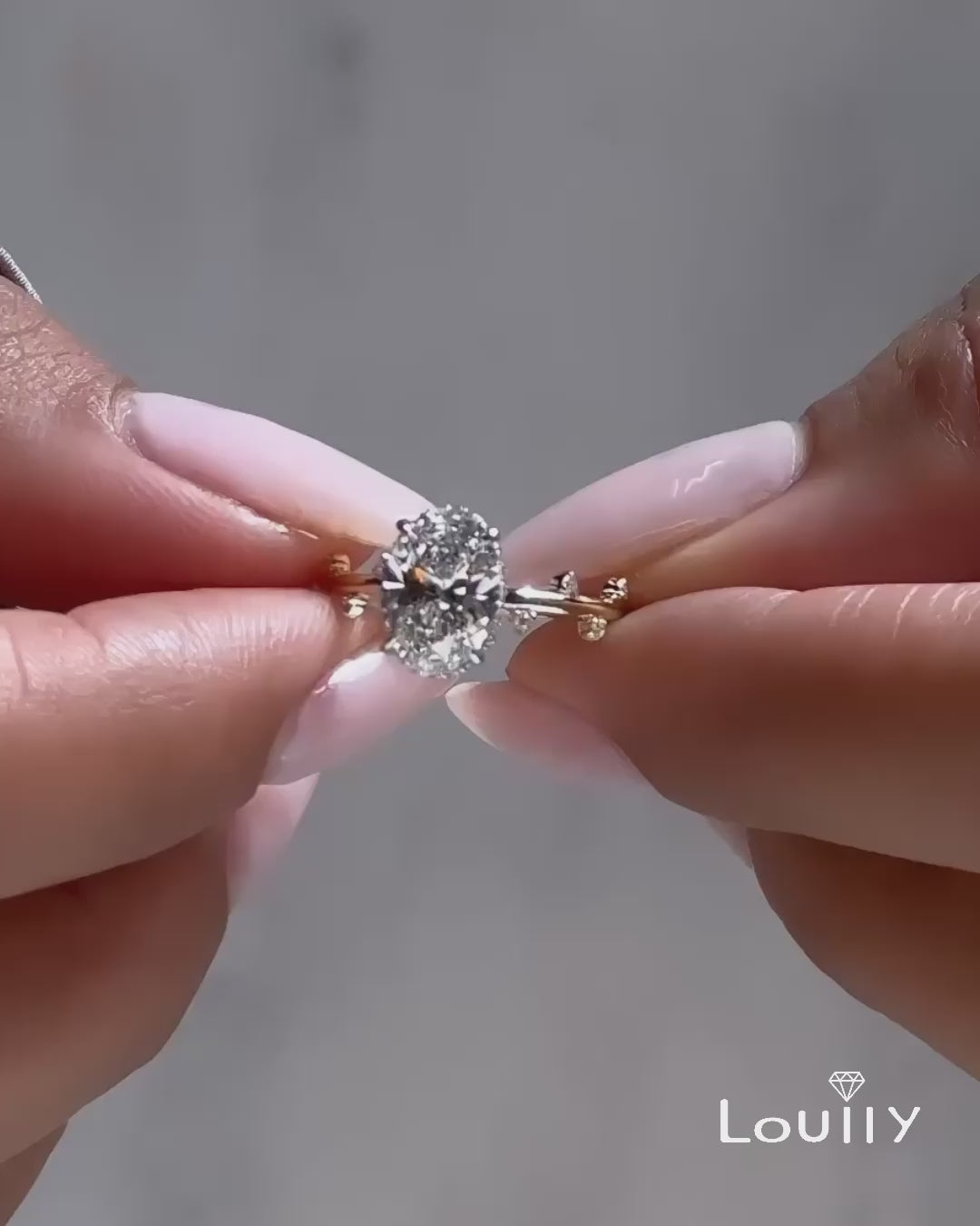 Louily Unique Yellow Gold Oval Cut Engagement Ring