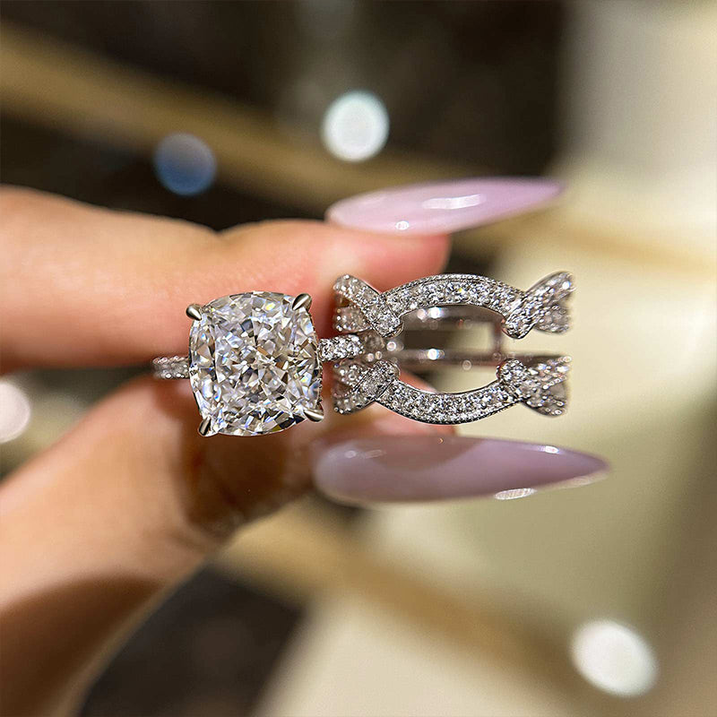 Louily Vintage Cushion Cut Insert Wedding Ring Set For Women In Sterling Silver