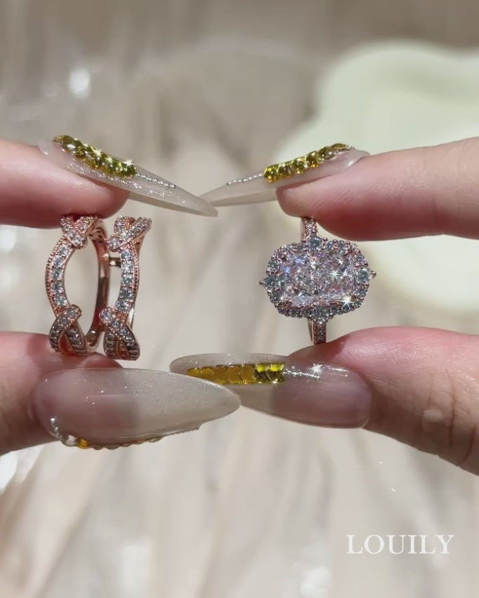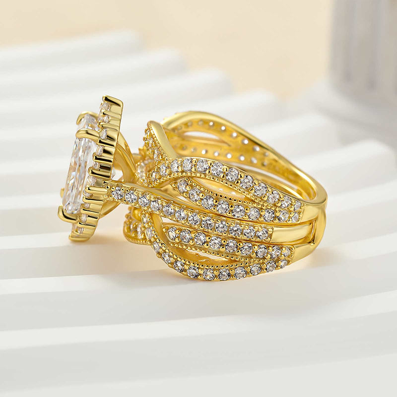 Louily Vintage Halo Radiant Cut Insert Wedding Ring Set For Women In Sterling Silver