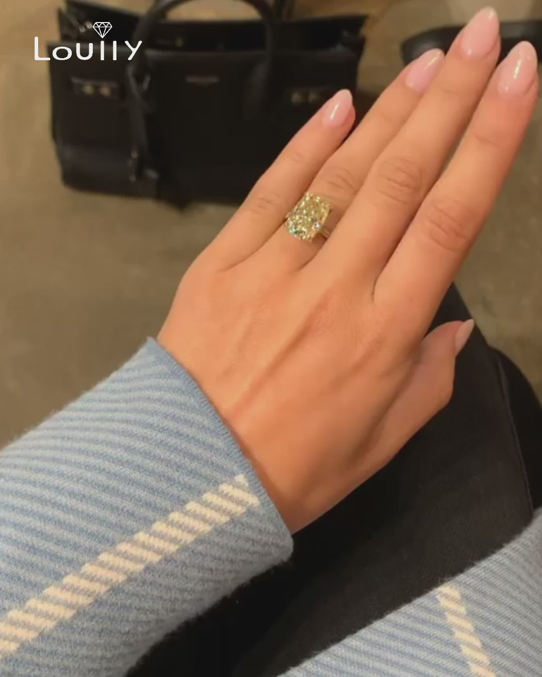 Louily Yellow Gold Elongated Cushion Cut Yellow Sapphire Engagement Ring In Sterling Silver