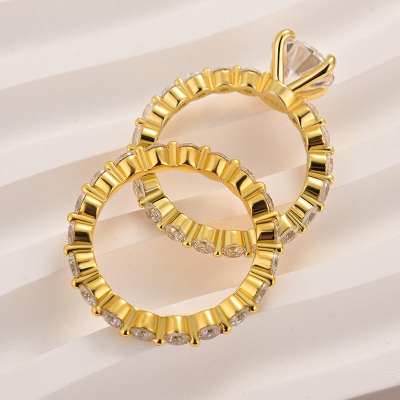 Moissanite 2.0 Carat Round Cut Wedding Ring Set With Eternity Wedding Band