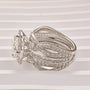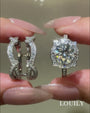 This 3.0Ct Moissanite stackable set showcases a dazzling round cut center stone encircled by a sparkling halo, paired with a coordinating enhancer band in white gold. The halo magnifies the stone’s radiance, while the enhancer adds a seamless layered effect for a sophisticated, versatile look.