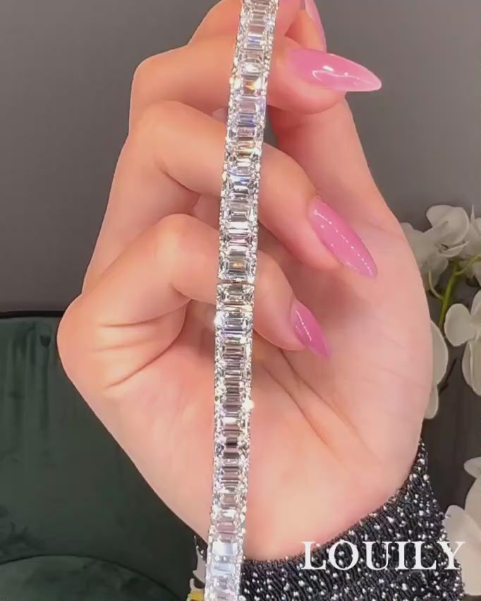 Romantic Classic White Emerald Cut Bracelet for Women In Sterling Silver