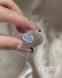 This 5.5Ct cushion cut wedding ring set exudes elegance with its vintage-inspired design. The bold cushion cut center stone is paired with a halo emerald cut half wedding band, creating a harmonious blend of old-world charm and modern sophistication.